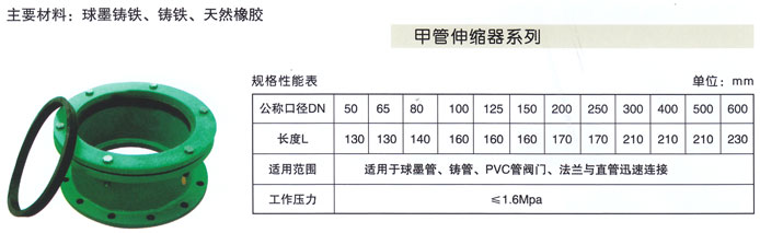 简要说明:甲管伸缩器也称伸缩节、膨胀节、补偿器、伸缩接头,伸缩器在   范围内可轴向伸缩,也能在   的角度内克服管道对接不同轴向而产生的偏移。