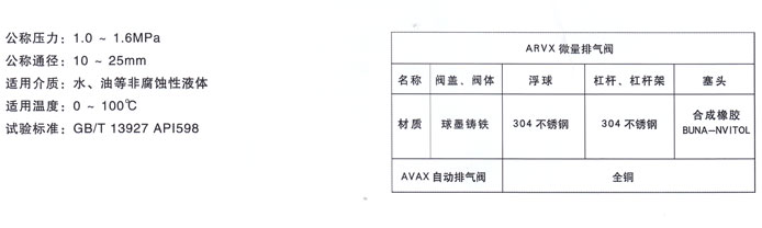 ARVX自动排气阀,在一般情况下。水中约含2VOI一%的溶解空气,在输水过程中,这些空气由水中不断释放出来,聚集在管线的高点处,形成空气袋(AIR POCKET)。使输水变得困难,系统输水能力可因此下降约5—15%。此微量排气阀主要功能就是排除这2VO[.%的溶解空气,并适合装置于高层建筑、厂区内配管、小型泵站用以保护或系统的输水效率及节约能源。